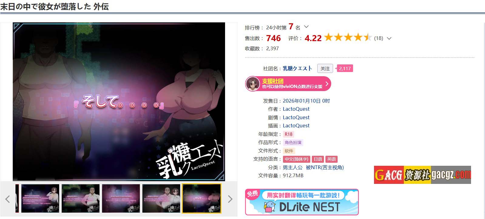 末日生存NTR RPG《她在末日中堕落了》外传登场。