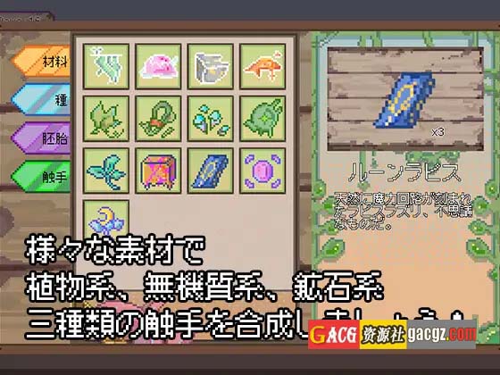 使用材料合成触手幼体,将其放入触手培养装置中,培育长大后,就能和触手愉快地玩耍啦!