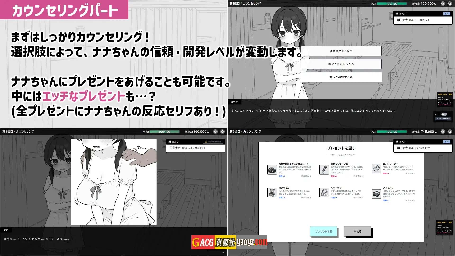 这是一款让您亲手逐步开发纯真少女的《背德按摩模拟》游戏。