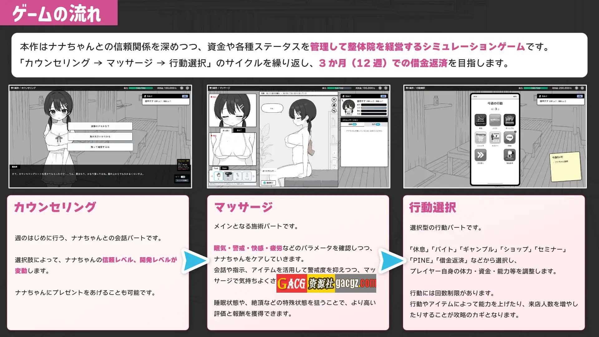 咨询 → 按摩 → 自由行动 的循环模式!