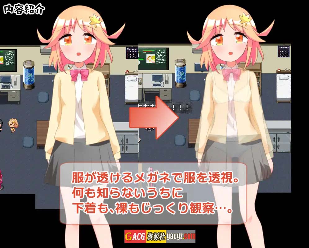 这是一款利用科学力量欺骗无知后辈女生,与其发生亲密互动的游戏。