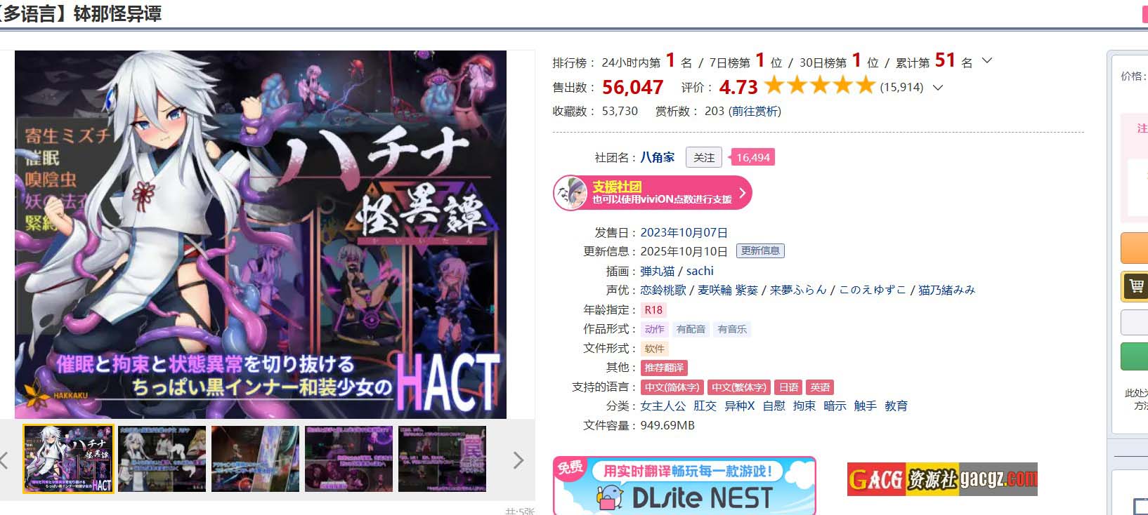 钵那怪异谭 ハチナ怪異譚 Ver1.13 官方中文版+存档