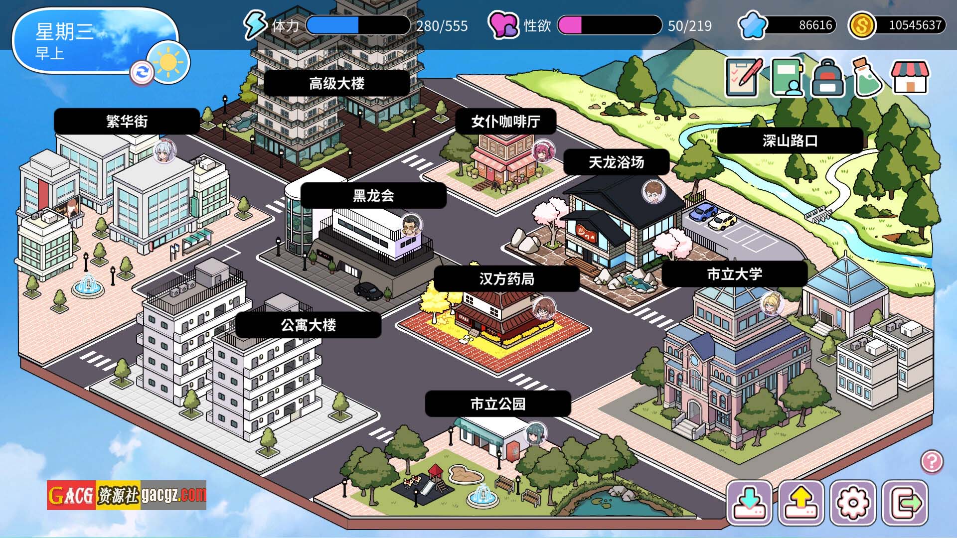 获取资讯与利益交换来提升自己的赚钱能力,获得更高的报酬利益与增加与女主角们的好感度。